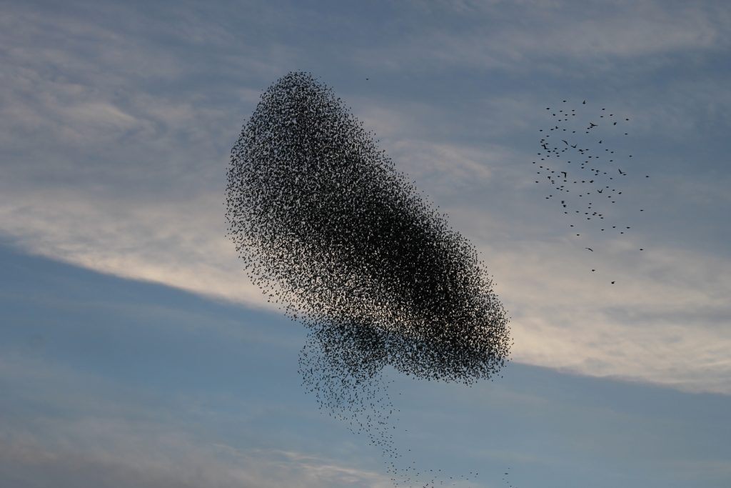 In winter, numbers of Starlings are swollen by visitors from northern and eastern countries in Europe. It is then that they can gather in huge flocks and, come dusk, put on their spectacular murmuration display. We don’t fully understand why or how these murmurations take place. The display is just a prelude to the finale, which is all the birds going to roost together. Hence, it is likely that ‘safety in numbers’ is a significant factor in explaining why they occur. When the cloud of Starlings swirl in an aerial ballet, it is tempting to think of some collective thought at work. However, it is probably caused by one bird moving slightly differently, which then affects its neighbours, and is then successively amplified through the flock. You are unlikely to see a murmuration over Bredfield, but you may not have to travel far to see one. Minsmere often hosts a Starling murmuration.